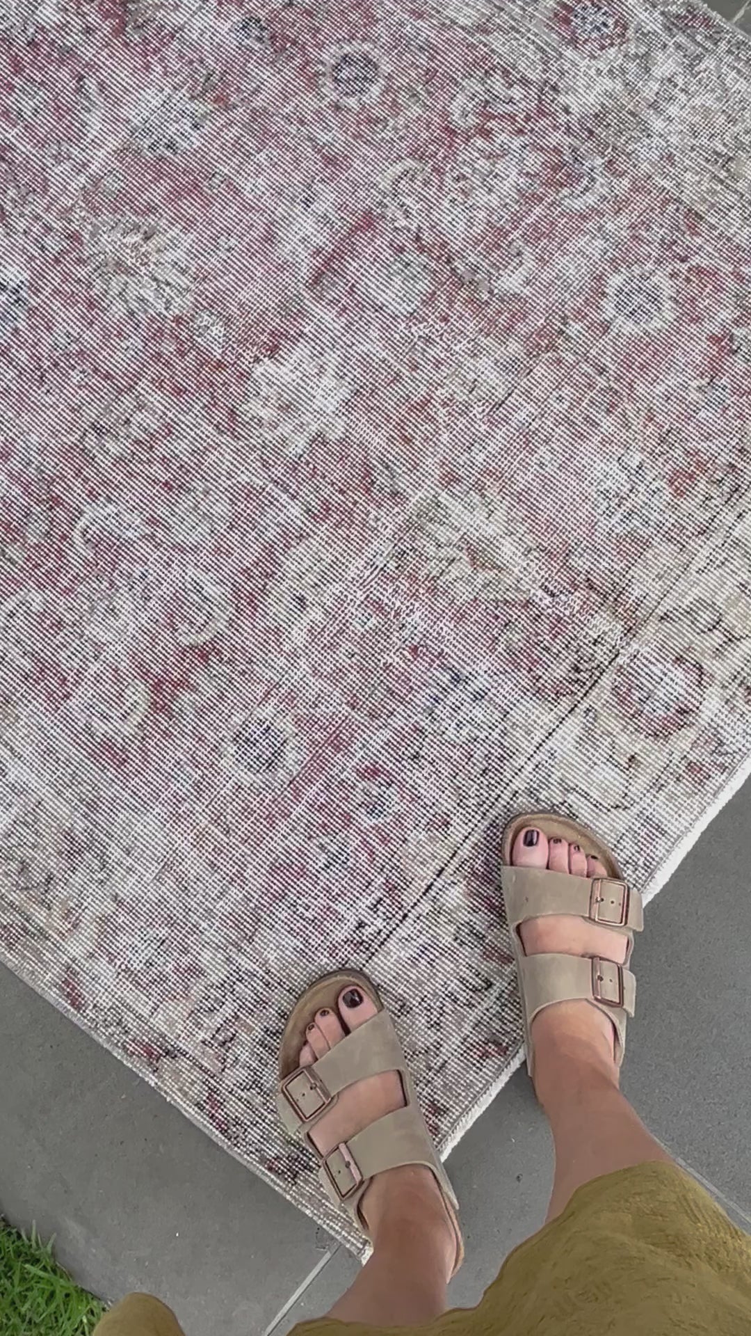 This cute little 1970's Oushak rug would be perfect for an entry, kitchen or thoroughfare.