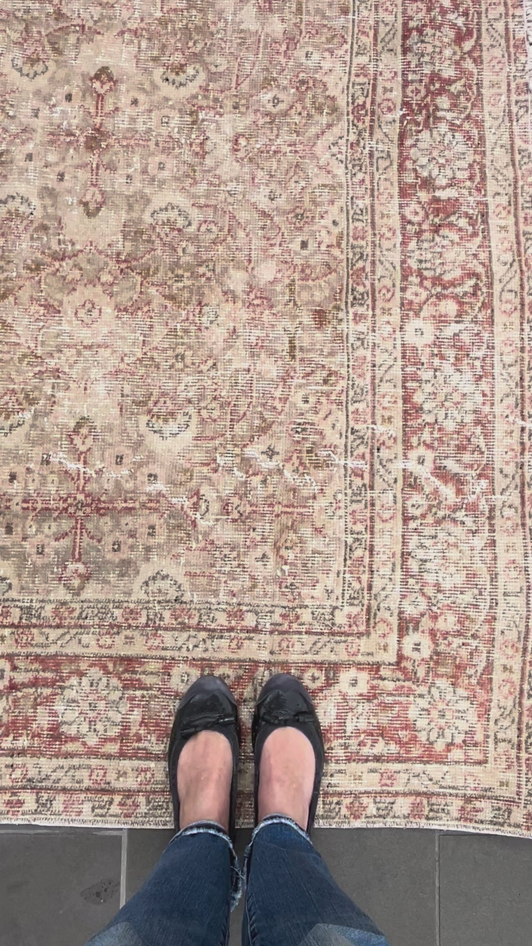 She’s a 1960’s Oushak rug with an all over pattern and border.